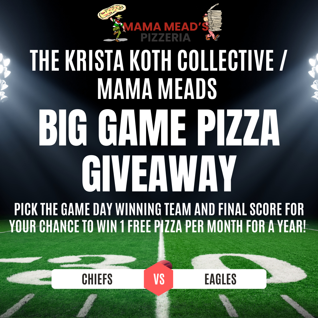 Pick the game day winning team and final score for your chance to win 1 free pizza per month for a year!